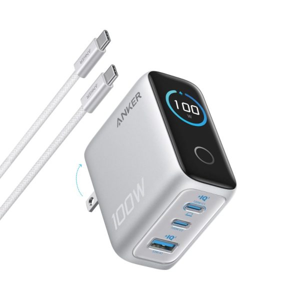 Củ Sạc Nhanh ANKER B121B 100W (ActiveShield™ 4.0, Smart LED Display, 2*Type-C + 1*USB-A port, Kèm Cáp Zolo C to C 240W)