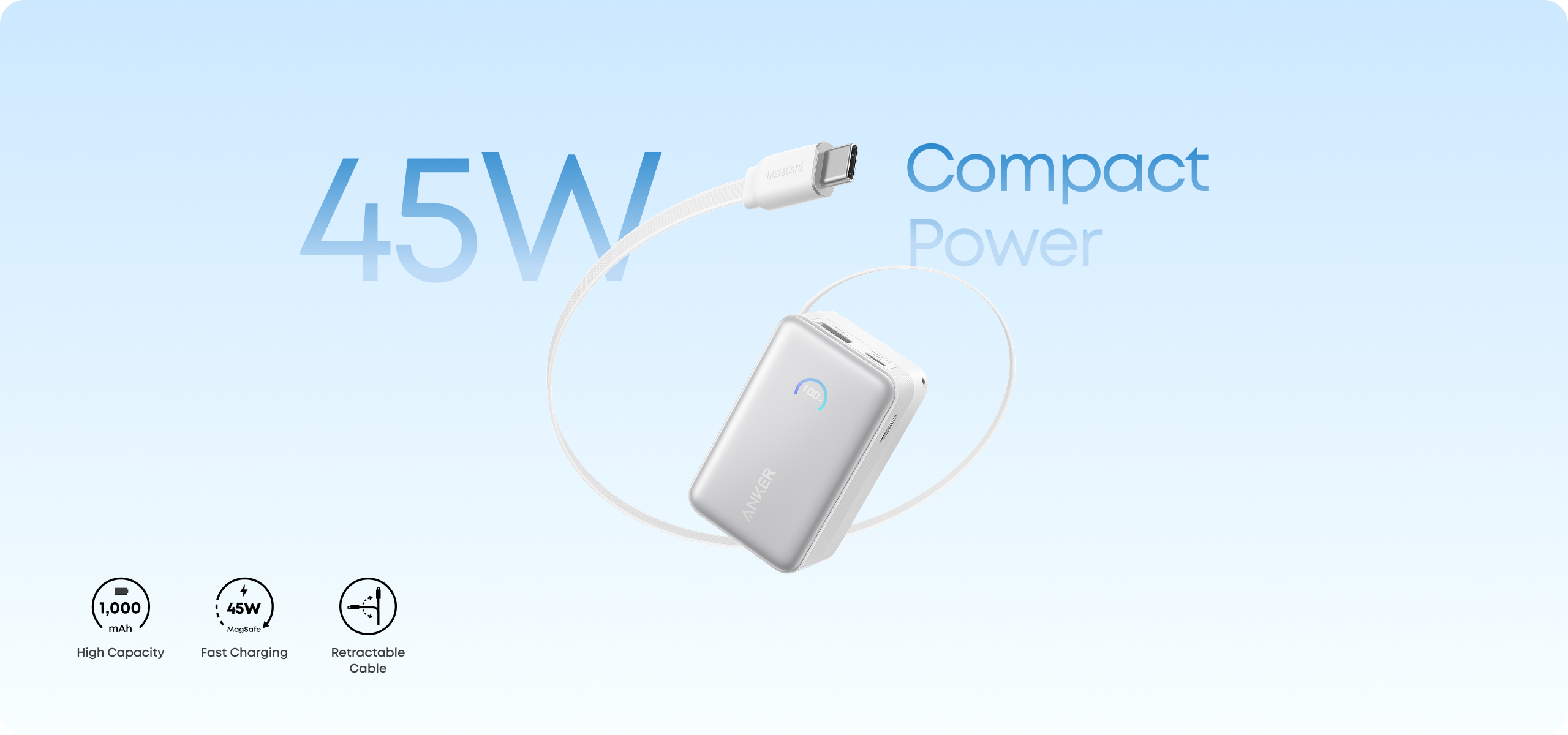 Pin Dự Phòng ANKER Nano A1638 10000mAh 45W (2*Type-C + 1*USB-A,With Built-In Retractable Type-C Cable, Smart LED Display)