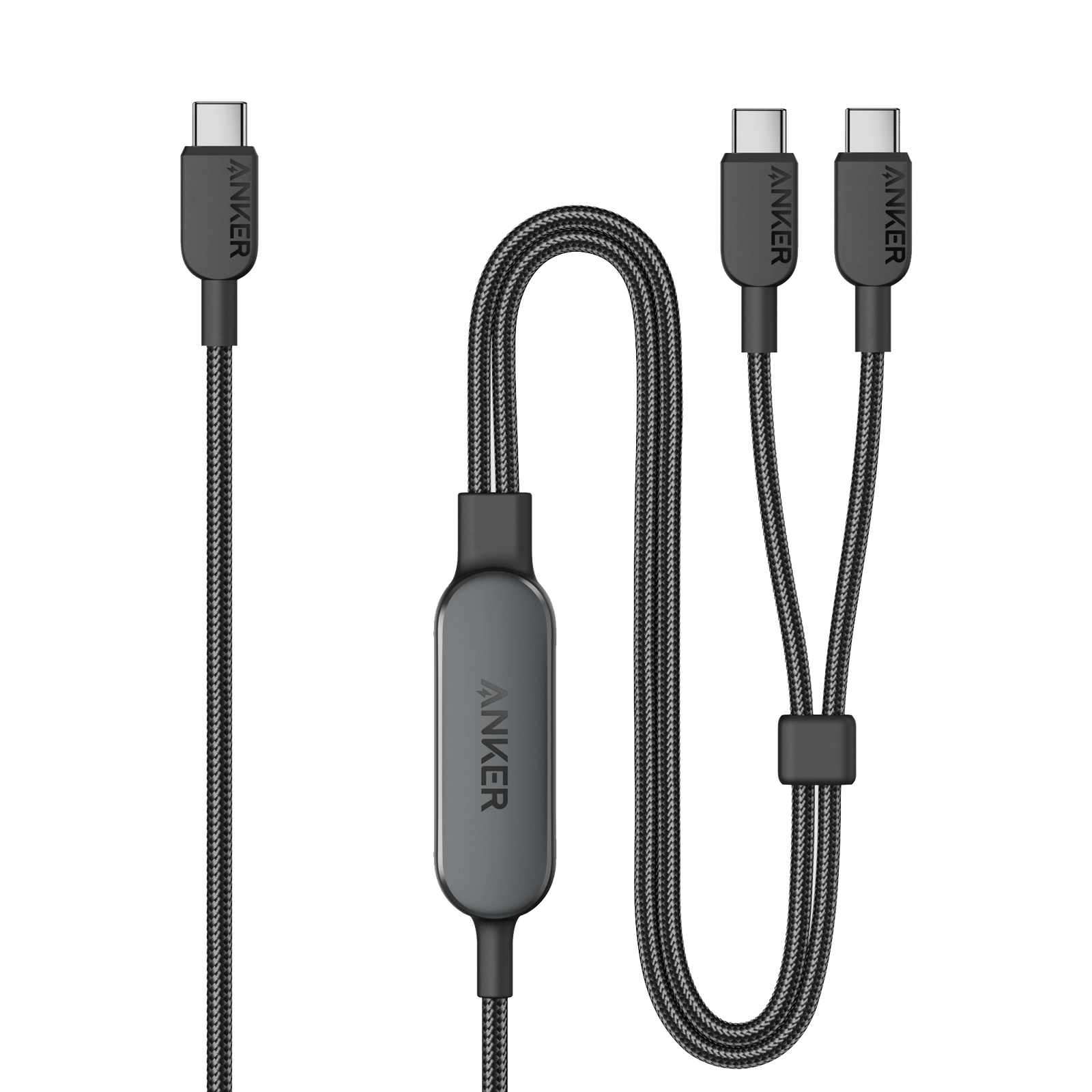 2-in-1 Charging Cable: Charge your smartphone and tablet simultaneously with one convenient cable, perfect for travel and business trips. Designed to minimize clutter, it’s ideal for keeping your space organized and carrying less while on the move. One Port, 140W Max Charging: Supercharge your 16-inch MacBook Pro (M3 Pro) to 50% in just 20 minutes with a single 140W USB-C port, designed for maximum power delivery and optimal charging speeds. Smart Power Management: Enhance your charging efficiency with this versatile cable, equipped with smart power distribution to optimize each device’s power needs. Flexible and Tough: Includes a 3 ft base cable and two 1 ft sections that can be adjusted with a cable slider, designed for durability with over 10,000 bend resistance. What You Get: Anker 2-in-1 USB-C to USB-C Cable (4 ft, 140W, Braided), welcome guide, 18-month warranty, and our friendly customer service.