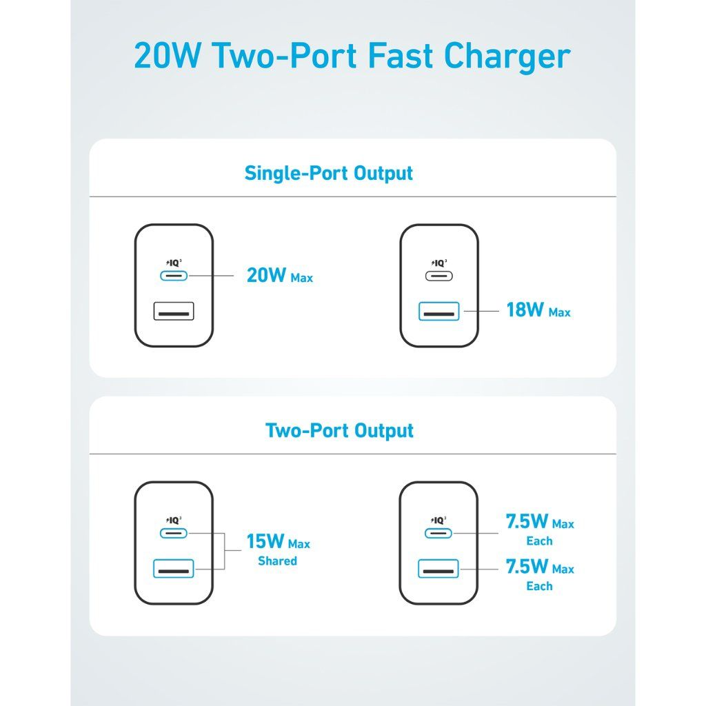 Output: USB-C: 5V⎓3A / 9V⎓2.22A / 12V⎓1.67A (20W Max), USB-A: 5V⎓3A / 9V⎓2A / 12V⎓1.5A (18W Max)