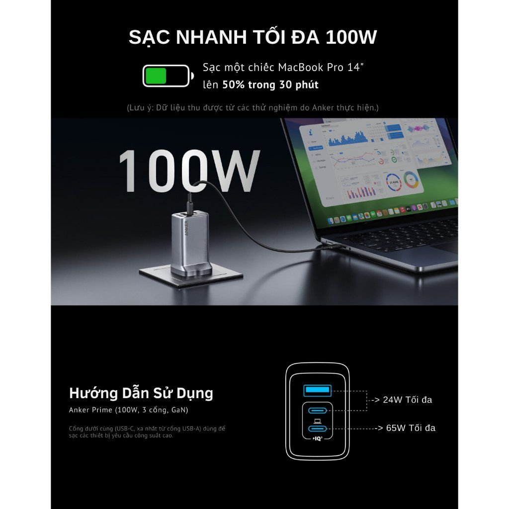 Sức mạnh 100W, sạc nhanh mọi thiết bị