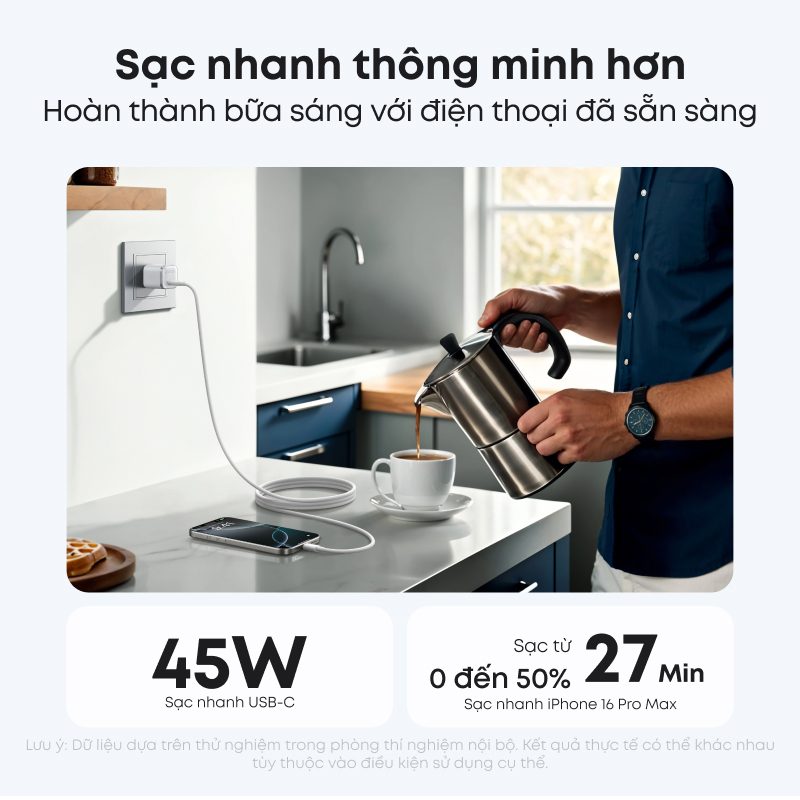 Công Suất Lên Đến 45W – Sạc Nhanh Đa Thiết Bị