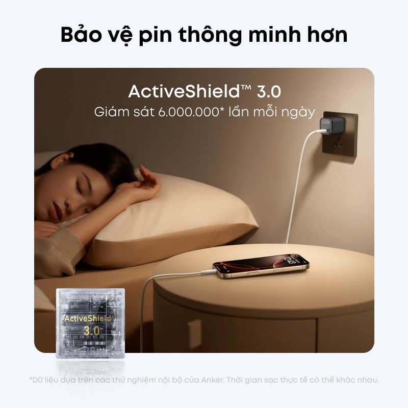 Sự an toàn của thiết bị luôn được Anker đặt lên hàng đầu. Củ sạc B2692 được trang bị hệ thống an toàn ActiveShield™ 3.0 tiên tiến nhất. Công nghệ này giám sát nhiệt độ hàng triệu lần mỗi ngày, liên tục điều chỉnh công suất đầu ra để bảo vệ thiết bị của bạn khỏi các tình trạng quá dòng, quá áp hay quá nhiệt trong suốt quá trình sạc qua đêm.