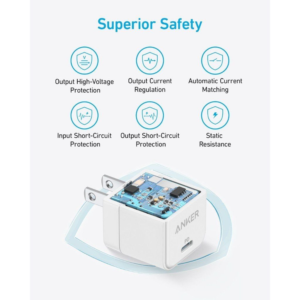 Anker luôn đặt an toàn lên hàng đầu. Củ sạc PowerPort III A2149 được tích hợp các lớp bảo vệ hiện đại giúp chống quá dòng, quá nhiệt và ngắn mạch, bảo vệ thiết bị của bạn khỏi những rủi ro không mong muốn khi sạc.
