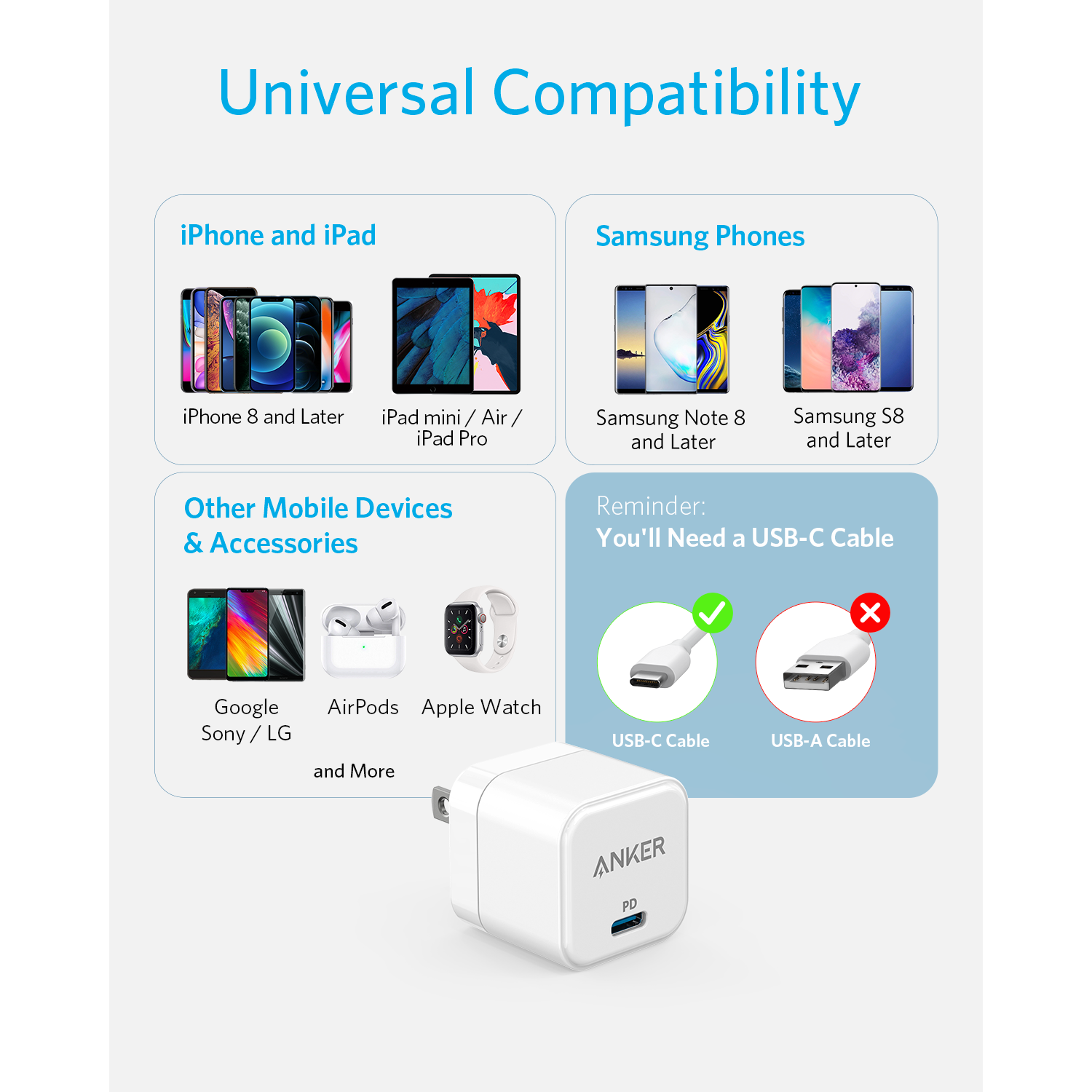 Tính năng Củ Sạc Nhanh 1C ANKER PowerPort III A2149 20W (GaN Charger)