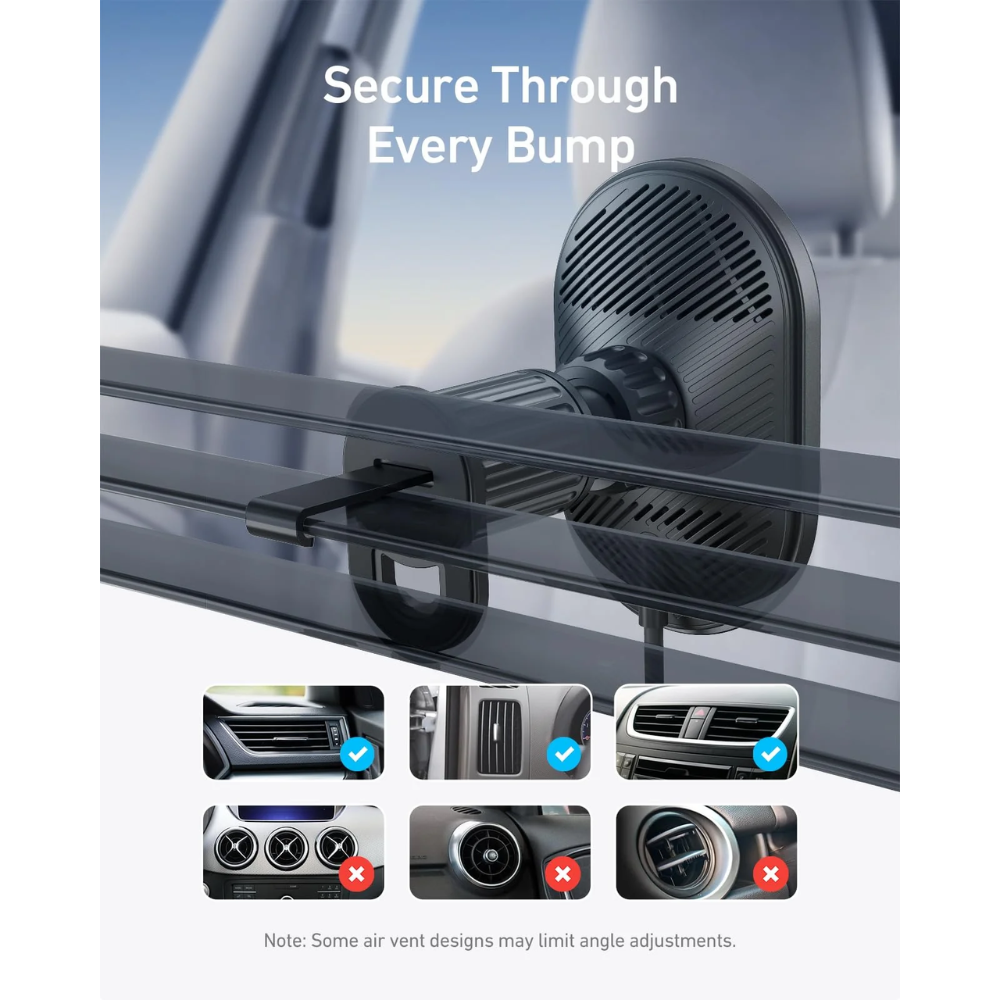 Nâng tầm trải nghiệm lái xe của bạn với ANKER MagGo 335 – giải pháp 2 trong 1 hoàn hảo kết hợp giữa đế giữ điện thoại từ tính tiện lợi và công nghệ sạc không dây tiên tiến, được thiết kế đặc biệt để sử dụng trên ô tô.