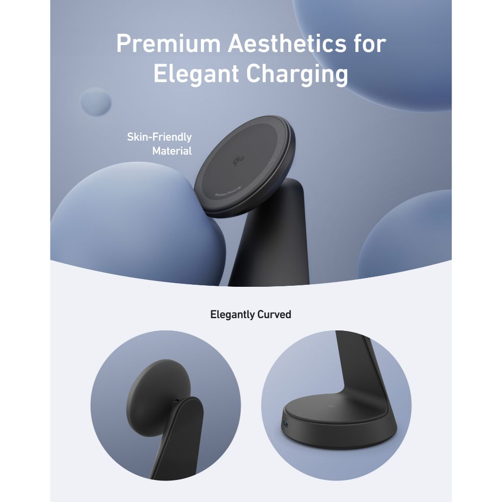 Với thiết kế dạng đứng cùng phần đế hình nón thanh lịch và lớp hoàn thiện mờ cao cấp (được làm từ 75% nhựa tái chế sau tiêu dùng), Anker MagGo A25M7 không chỉ là một phụ kiện sạc mà còn là một điểm nhấn trang trí cho không gian làm việc hoặc phòng ngủ của bạn.