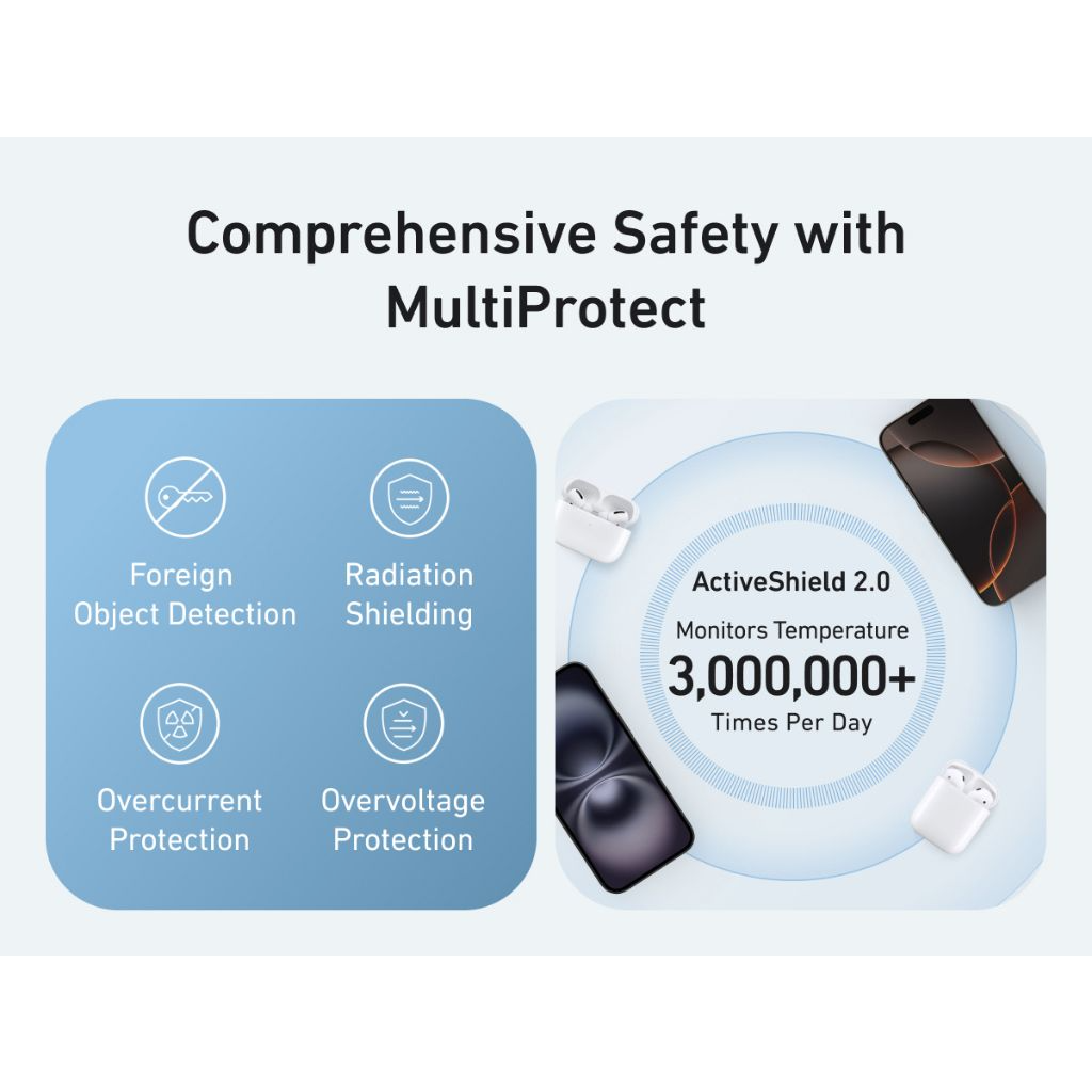Tính năng Đế Sạc Đứng Không Dây Từ Tính 2-in-1 Qi2 ANKER MagGo A25M7 15W (Xoay Ngang 360° & Dọc 50°-70°, Sạc Không Dây Chuẩn Qi2, ActiveShield™ 2.0)