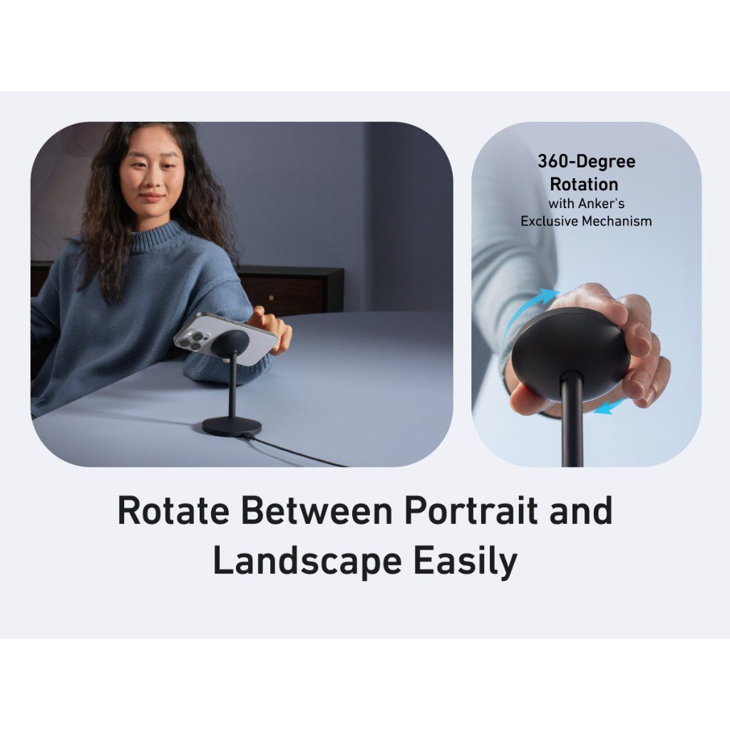 Hình Ảnh Đế Sạc Đứng Không Dây Từ Tính Qi2 ANKER MagGo A25X1 15W (Xoay Ngang 360° & Dọc 70°, Sạc Không Dây Chuẩn Qi2, MultiProtect™)