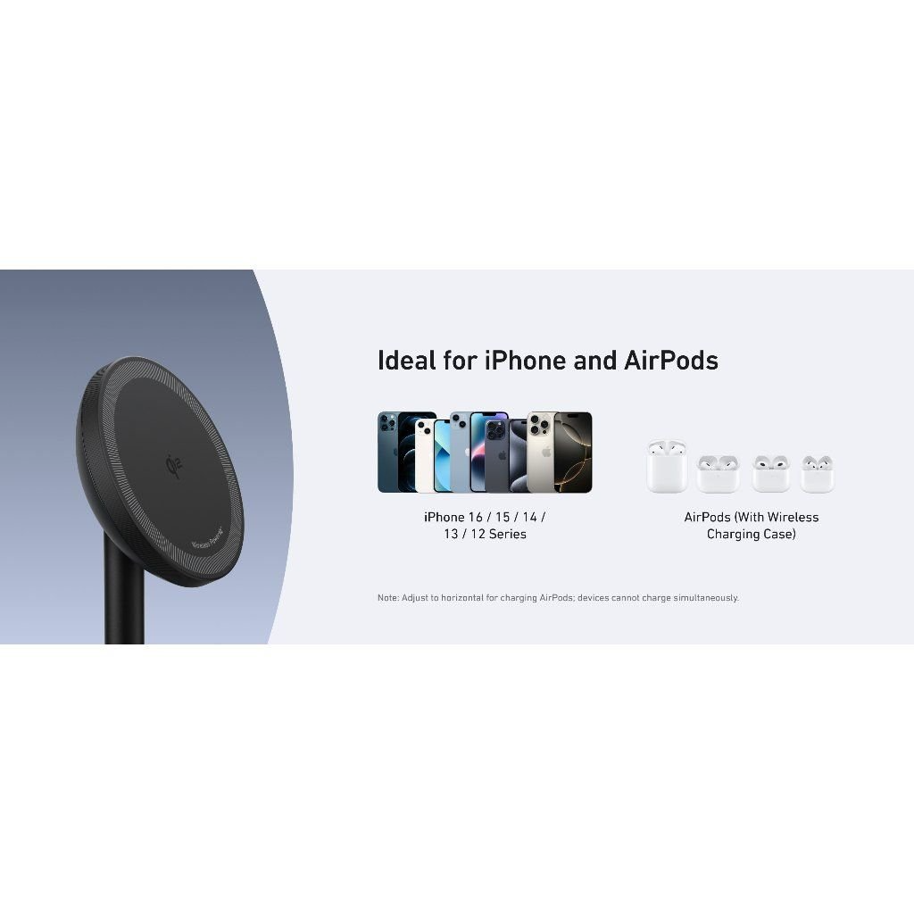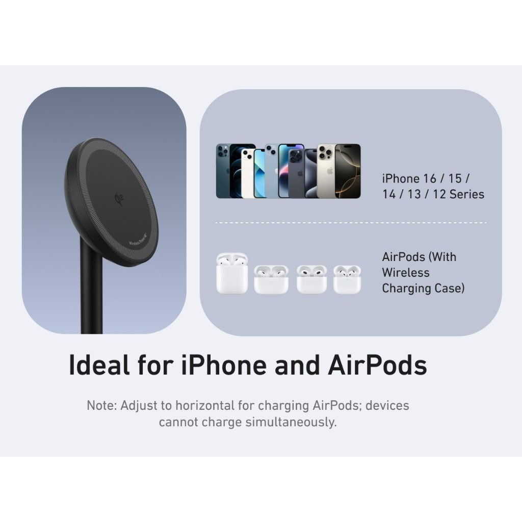 Anker MagGo A25X1 không chỉ sạc nhanh cho iPhone mà còn có thể sạc không dây cho AirPods và các tai nghe không dây khác có hỗ trợ chuẩn Qi (công suất tối đa 5W) khi đặt trên bề mặt đế.