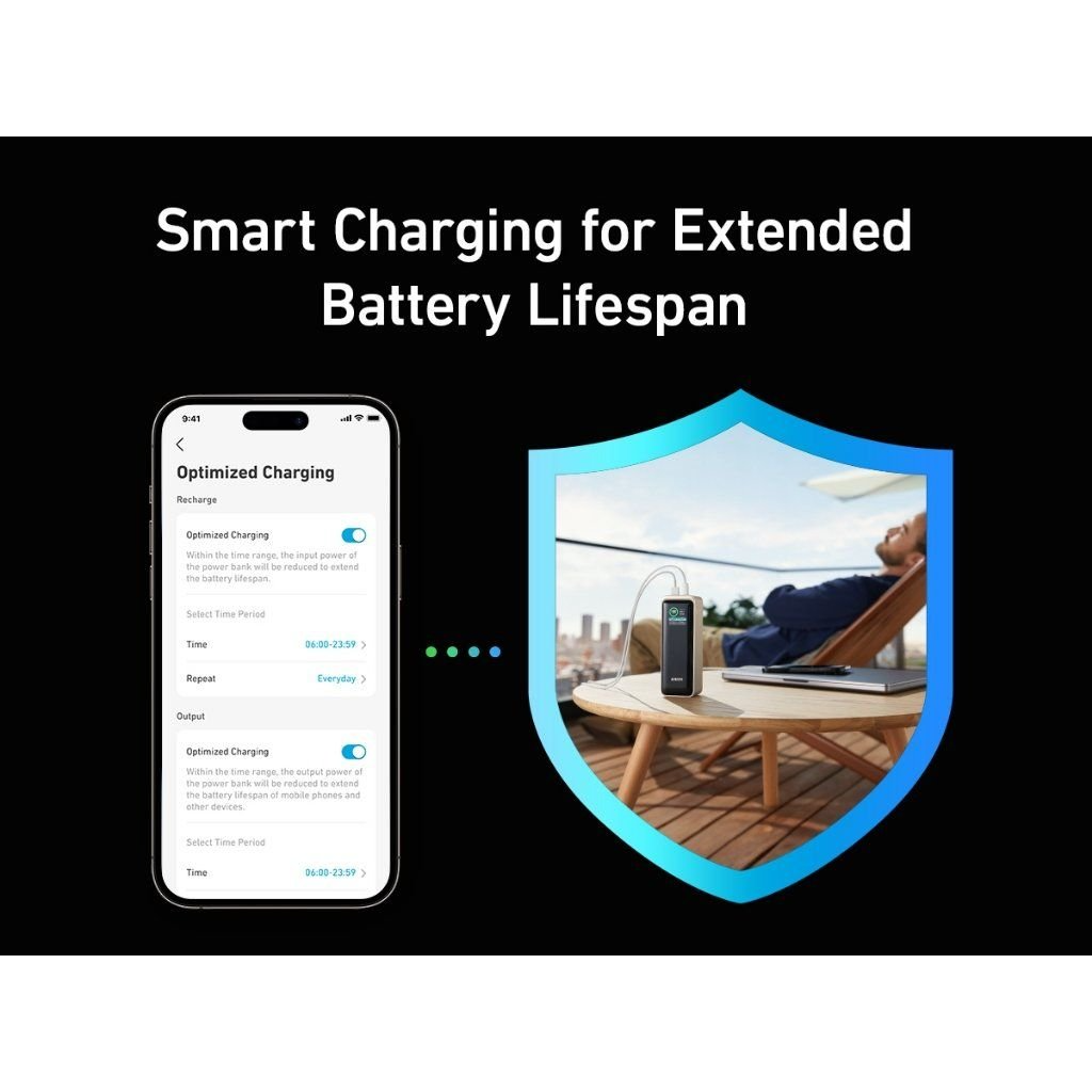 Kết nối với ứng dụng Anker trên điện thoại, bạn có thể theo dõi dung lượng pin còn lại, thời gian sạc, và điều chỉnh các cài đặt một cách dễ dàng.
