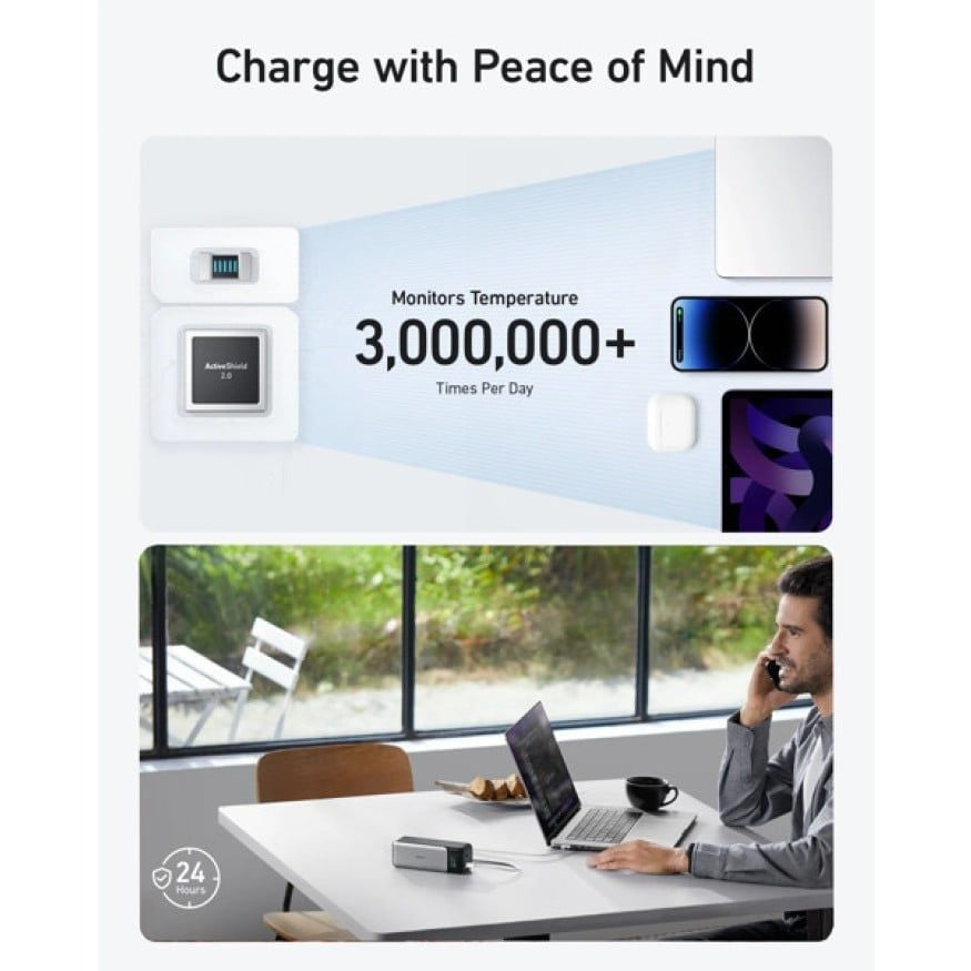 Với kích thước lý tưởng để bỏ vào ba lô hoặc túi xách, Anker 737 là người bạn đồng hành lý tưởng cho công việc, du lịch hoặc sử dụng hàng ngày. Công nghệ ActiveShield™ 2.0 đảm bảo an toàn tuyệt đối cho thiết bị của bạn trong quá trình sạc.