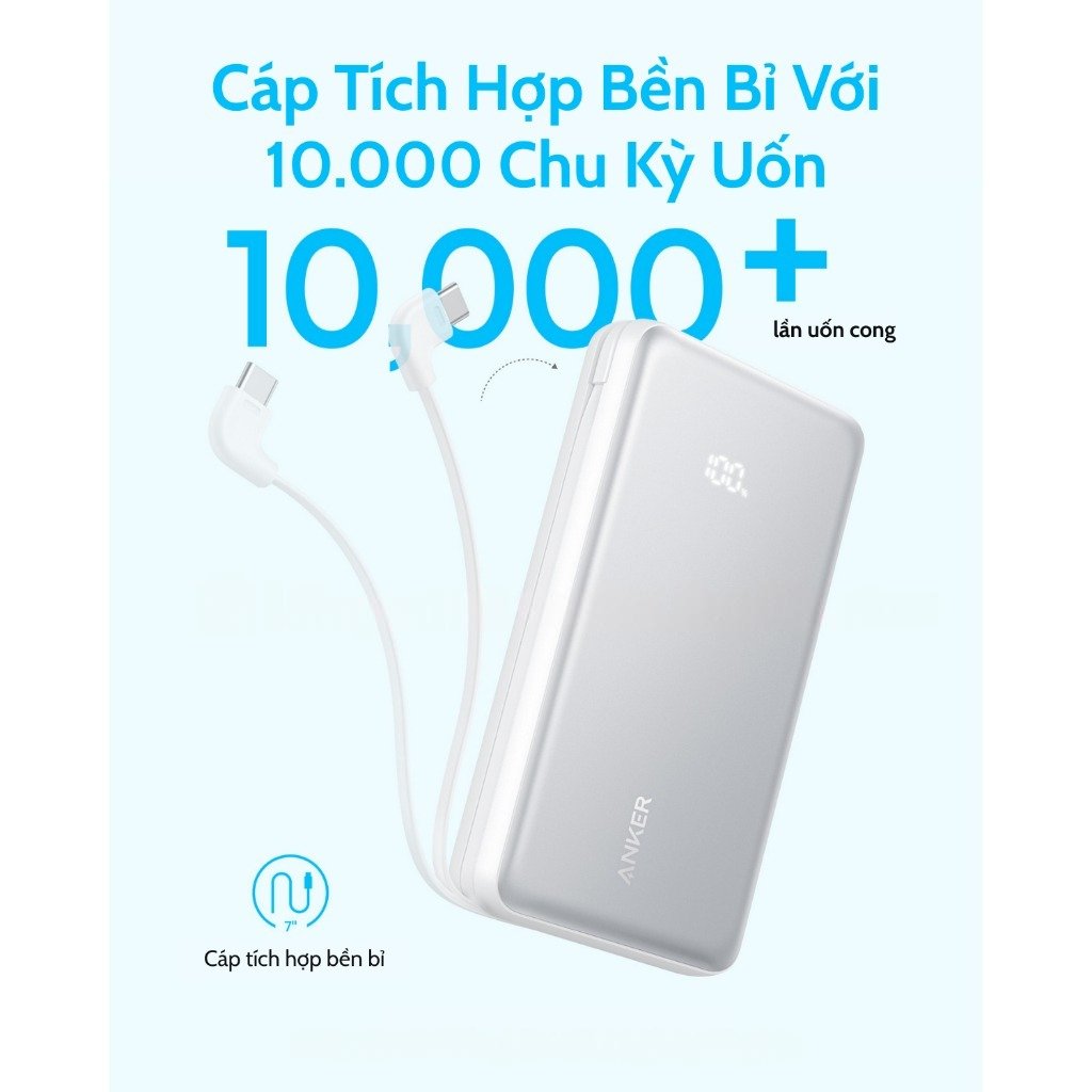 Hình Ảnh Pin Dự Phòng ANKER Zolo A110E 20000mAh 22.5W (1*Type-C + 1*USB-A Port + Type-C Built-in Cable, Digital Display)