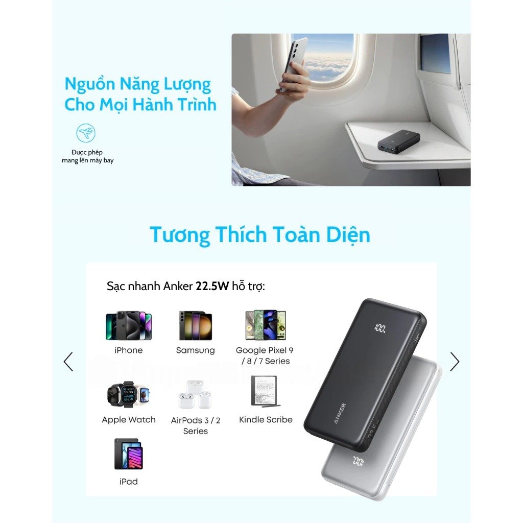 Tính năng Pin Dự Phòng ANKER Zolo A110E 20000mAh 22.5W (1*Type-C + 1*USB-A Port + Type-C Built-in Cable, Digital Display)