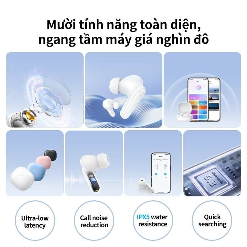 Tính năng Tai Nghe Không Dây TWS SOUNDCORE R50i (Bluetooth v5.3, 10H, IPX5, BassUp™, AI 2 Mic, Support App)