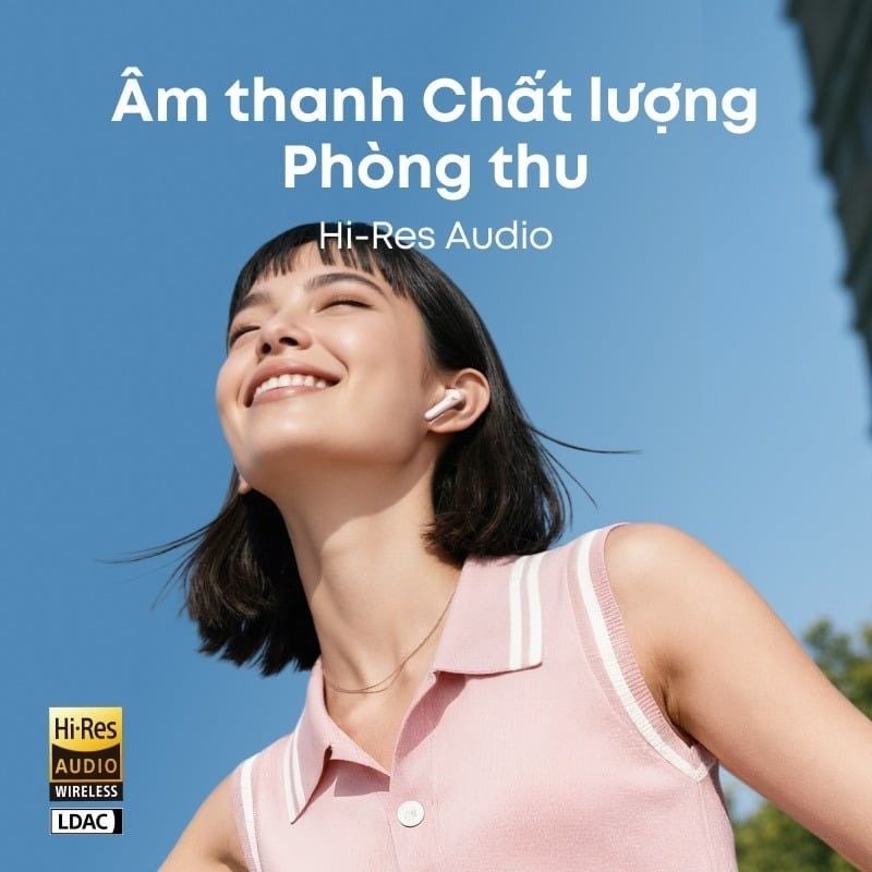 Được trang bị Driver 11mm phủ lớp Titan cao cấp kết hợp với bộ giải mã LDAC, Soundcore R60i NC mang đến chất lượng âm thanh đạt chuẩn Hi-Res Audio với độ chi tiết cao gấp 3 lần so với chuẩn Bluetooth thông thường. Âm bass được tái tạo mạnh mẽ, đánh lực nhưng không hề bị méo tiếng, trong khi dải mid và treble vẫn giữ được sự tách bạch và trong trẻo.