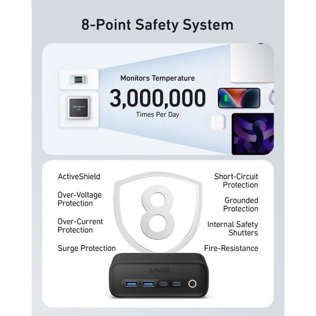 Tính năng Trạm Sạc Đa Năng 7-in-1 ANKER 525 A91C0 67W (ActiveShield™ 2.0,  3*AC Outlets + 2*USB-A + 2*USB-C)