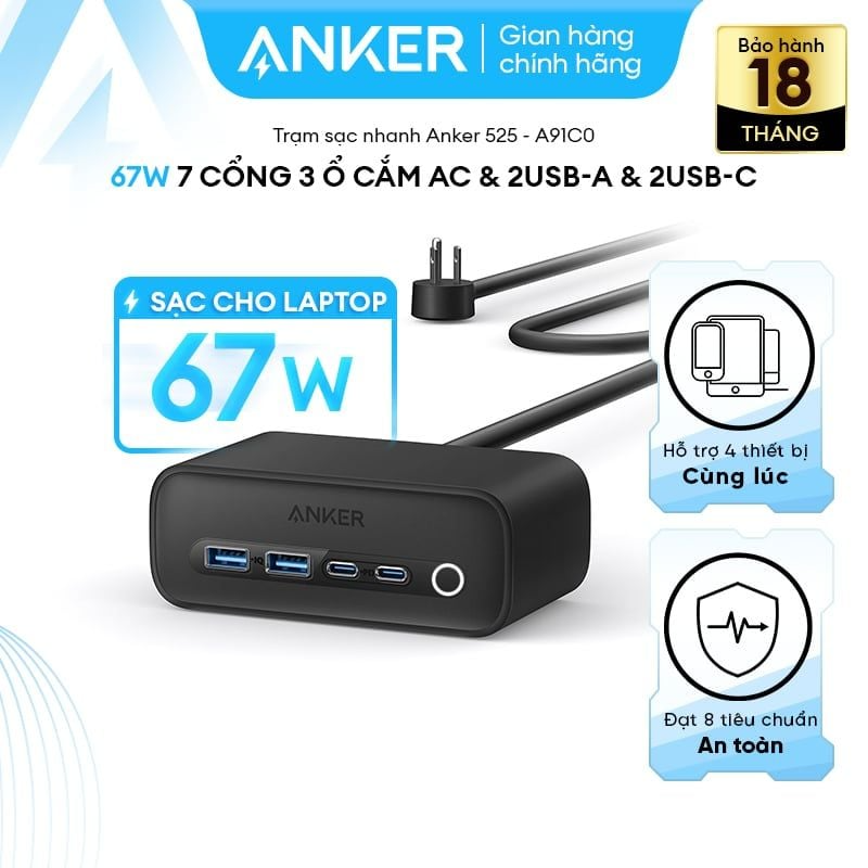 Trong thời đại mà thiết bị di động và laptop ngày càng trở nên phổ biến, nhu cầu sạc nhanh, an toàn và đồng thời nhiều thiết bị là yếu tố quan trọng giúp tối ưu hóa hiệu suất làm việc cũng như trải nghiệm giải trí. Trạm sạc đa năng 7 in 1 Anker 525 A91C0 67W ra đời nhằm mang đến giải pháp sạc toàn diện cho văn phòng, gia đình hay các không gian làm việc hiện đại. Sản phẩm tích hợp 7 cổng sạc khác nhau trong một thiết bị, kết hợp công nghệ tiên tiến và thiết kế tinh tế, giúp sạc đồng thời nhiều thiết bị một cách hiệu quả và an toàn.