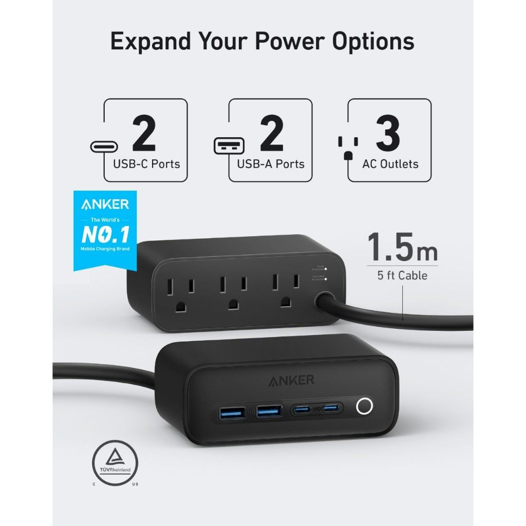 Hình Ảnh Trạm Sạc Đa Năng 7-in-1 ANKER 525 A91C0 67W (ActiveShield™ 2.0,  3*AC Outlets + 2*USB-A + 2*USB-C)